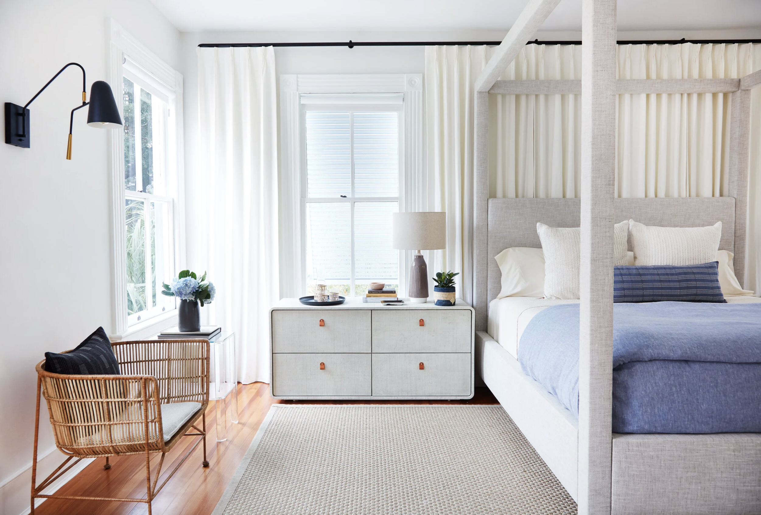 Nothing quite kills a vibe like harsh, unflattering overhead lighting. Instead, have multiple layers of lighting options in every room so you can make adjustments. Brighter and energizing light in the morning and warmer, more calming light as the day winds down is the trick. Plus, harness natural light throughout the day to compliment your interior lighting. The goal for harmonious lighting is to mimic the sun’s transition. It not only feels good visually, but it aids in regulating the nervous system and improving sleep quality.